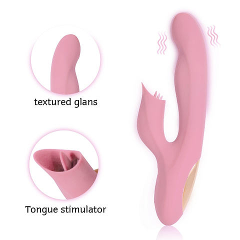 Jouet vibrant érotique 3-en-1 pour adultes 10 vitesses gode réaliste langue léchant mordant caractéristiques stimulateur de clitoris point G pour femmes